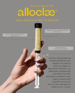 AlloClae™ is the world’s newest body-enhancing technology. Get a natural butt lift or breast lift without implants, even if you don’t have enough fat, using a naturally-derived structural adipose filler.